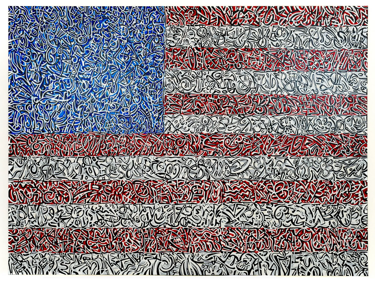 The layered visual language throughout the flag reflects the layered nature of life itself. Our experiences, beliefs, and perspectives are constantly overlapping and evolving. While the composition appears chaotic up close, the marks stretch across the entire surface of the painting, creating a unifying visual rhythm. For me, this represents the possibility of unity even within difference.